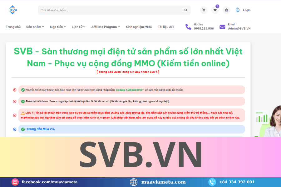 Đứng đầu danh sách là website SVB.VN. Theo như mình tiều hiểu thì đây là một trang Sàn TMĐT bán nguyên liệu Ads Via – BM đầu tiên tại việt nam.