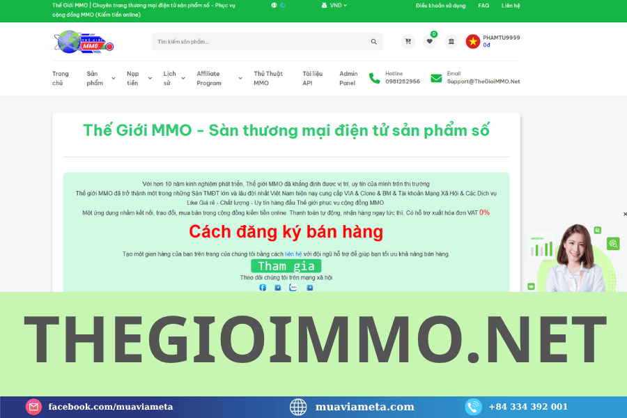 Nếu đã nói về website về Via và Bm mà không nhắc tới trang web THEGIOIMMO.NET thì hẳn là một thiếu sót lớn. Trang web này là một trong những trang web tiên phong và đi cùng thời với Web Mua VIA Meta, nên nói về độ uy tín thì không cần phải bàn cãi , thế giới MMO tự hào với có đội ngũ trẻ trung và năng động của đội ngũ tư vấn viên. Mọi vấn đề mà bạn gặp phải khi cần thì đội ngũ nhân viên luôn sẵn sàng hỗ trợ và tư vấn bạn nhiệt tình, đây cũng là yếu tố quan trọng nhất của trang web để có thể thành công cho tới nay.