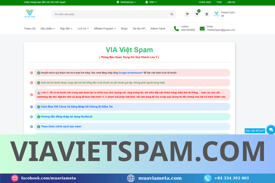 Được thành lập vào năm 2016 và với gần 10 năm làm trong ngành bán nguyên liệu chạy Ads. VIA Việt Spam luôn là một đơn vị uy tín và có thương hiệu hàng đầu trong lĩnh vực này cùng hình thức thanh toán online nhanh chóng và an toàn tuyệt đối. Do đó, bạn hoàn toàn yên tâm khi mua với nhiều chương trình khuyến mãi, quà tặng hấp dẫn.